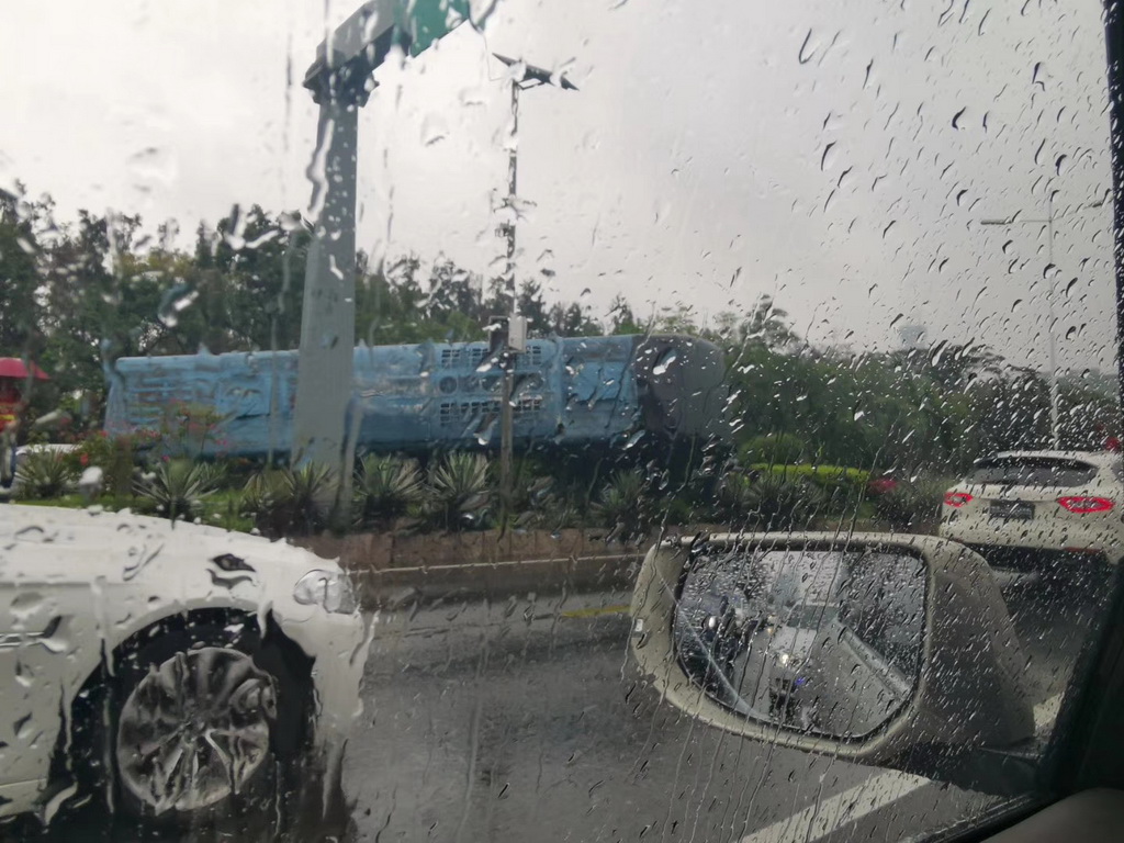 剛剛,濱海大道沙河西路 一大巴車隔離帶上側(cè)翻