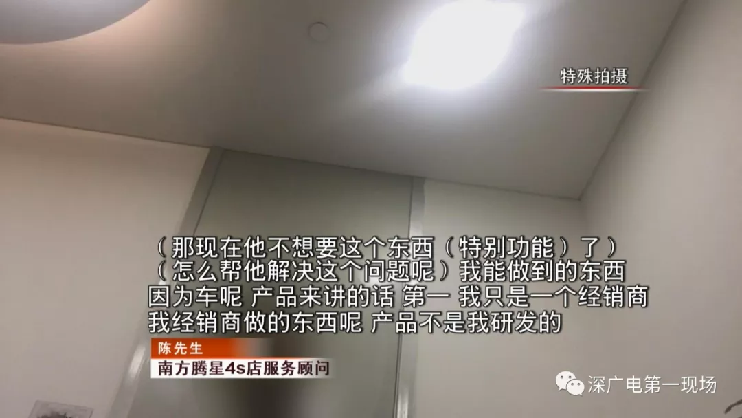 今天下午,記者跟著楊先生再次來到了南方騰星4s店,售后經(jīng)理陳先生表示,車輛自動開啟天窗的換氣功能,是這輛車的一個特別功能,對于給客戶帶來的不便,這位工作人員卻始終無法解釋清楚。