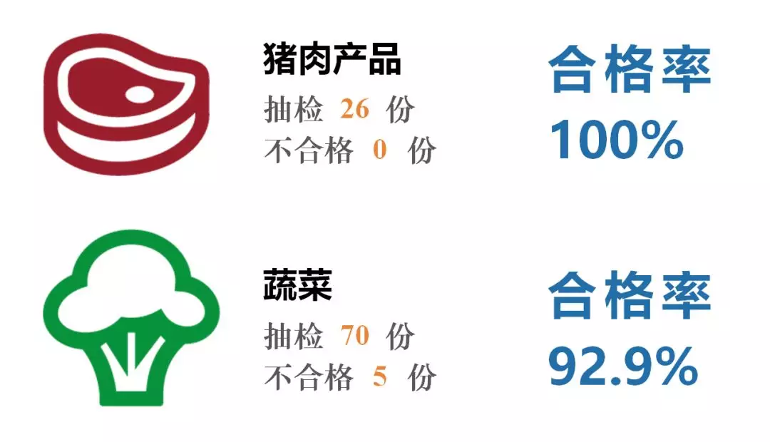 共抽檢26份豬肉和70份蔬菜