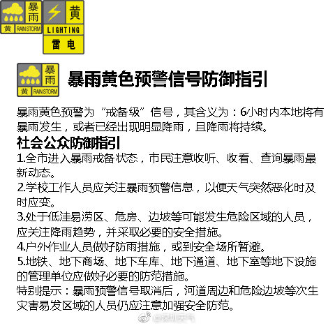 【全市暴雨黃色和雷電預(yù)警信號(hào)仍在生效】