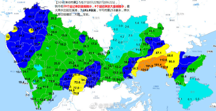 據(jù)悉,自27日起深圳進(jìn)入新一輪龍舟水降水過(guò)程。預(yù)計(jì)28-29日受冷空氣影響,有大雨到暴雨,伴有短時(shí)強(qiáng)降雨和6-8級(jí)雷雨大風(fēng)。本次強(qiáng)降雨過(guò)程將以短時(shí)強(qiáng)降雨為主,具有突發(fā)性強(qiáng)、短時(shí)雨強(qiáng)大、局地性明顯的特點(diǎn)。