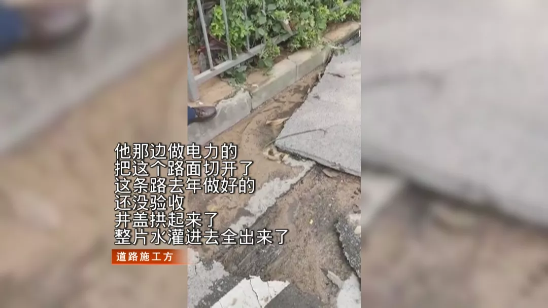 原標(biāo)題:一場(chǎng)暴雨過后,剛鋪好的瀝青路成了渣渣!