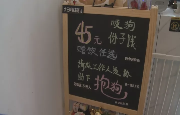 雖然不是周末,還是有顧客在里面消費(fèi),記者看到,收費(fèi)欄寫(xiě)著45元吸狗份子錢(qián),贈(zèng)送飲品。