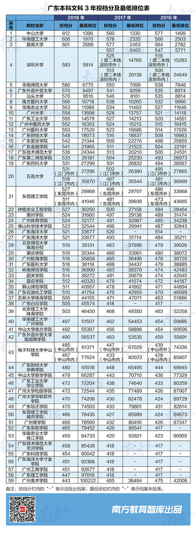 南方教育智庫獨家統(tǒng)計了2016-2018共3年廣東高校錄取分和最低排位,為廣東考生全面分析,排位多少名,能上廣東好大學?
