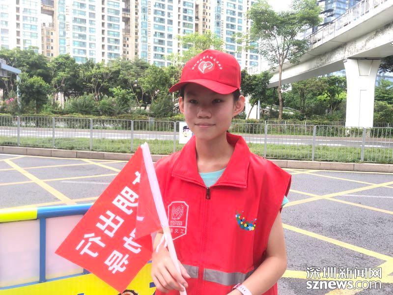 【南頭中學(xué)】南頭中學(xué)考點的小義工,百合外國語學(xué)校初一學(xué)生陳香凝,今天早上七點就早早過來為本次高考提供幫助。