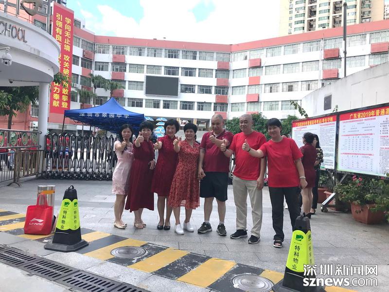 【翠園中學(xué)】門外的家長(zhǎng)穿上紅衣為高考助力加油
