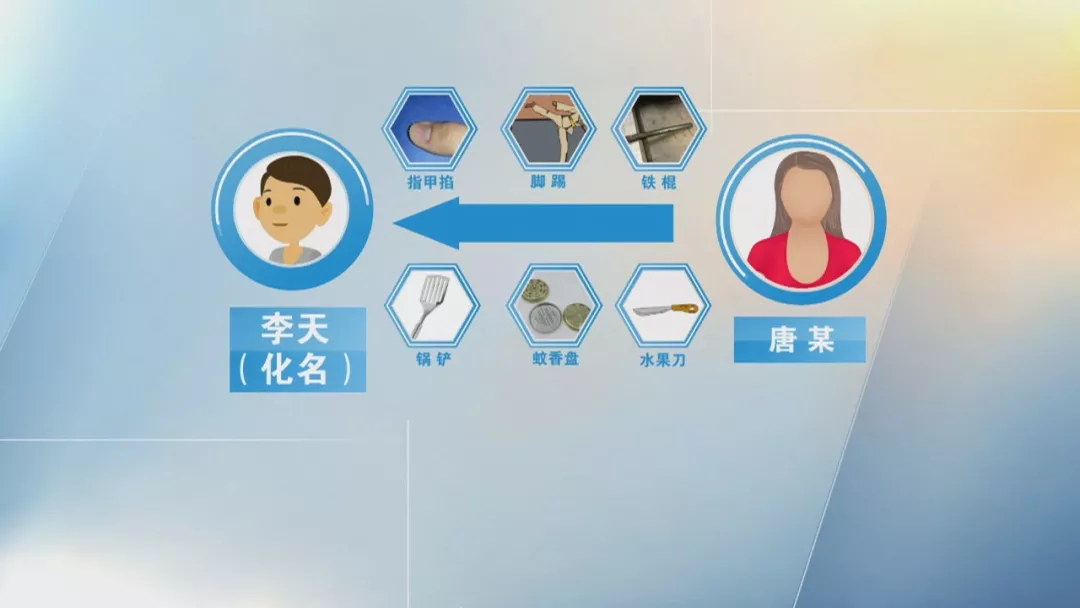 唐某經(jīng)常用指甲掐、擰受害人,用腳踢踹受害人,使用鐵棍、鍋鏟等堅(jiān)硬鋒利物體毆打受害人頭部和身體,讓受害人長(zhǎng)時(shí)間跪在蚊香盤上,甚至用水果刀多次割傷受害人,導(dǎo)致受害人到醫(yī)院縫合傷口。
