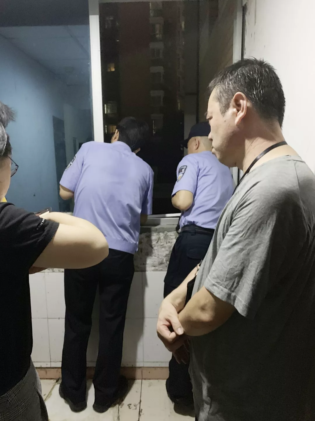 兩名女子蹲坐在離地面10多米的窗外平臺,頻頻做出要向下跳的動作,且不讓任何人靠近,非常危險。這時,劉智所長來到窗邊,表明身份,跟窗外的兩名女子溝通,現(xiàn)場初步了解到二人因投資受損,產生了輕生念頭。