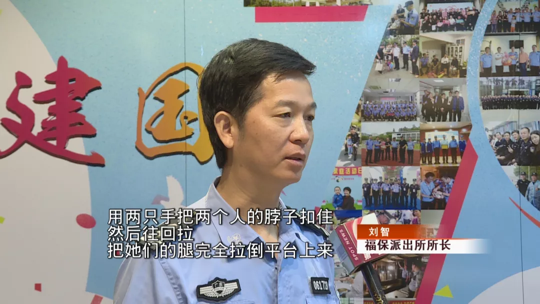 關(guān)鍵時(shí)刻,劉智一個(gè)箭步上前,雙手迅速摟住兩名女子的脖子,身體往后倒,順勢(shì)把二人從屋檐上拉了下來(lái)。