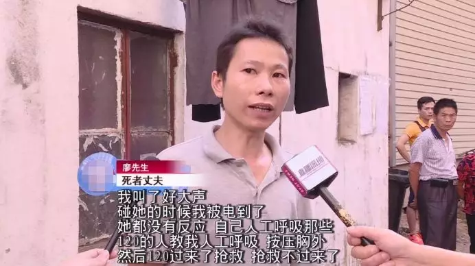 在聽到妻子大叫一聲后,廖先生馬上進(jìn)入浴室查看,發(fā)現(xiàn)妻子已經(jīng)倒在地上不省人事。廖先生當(dāng)下立即意識到,妻子很可能是觸電了,便立即將電閘關(guān)掉并撥打了120。
