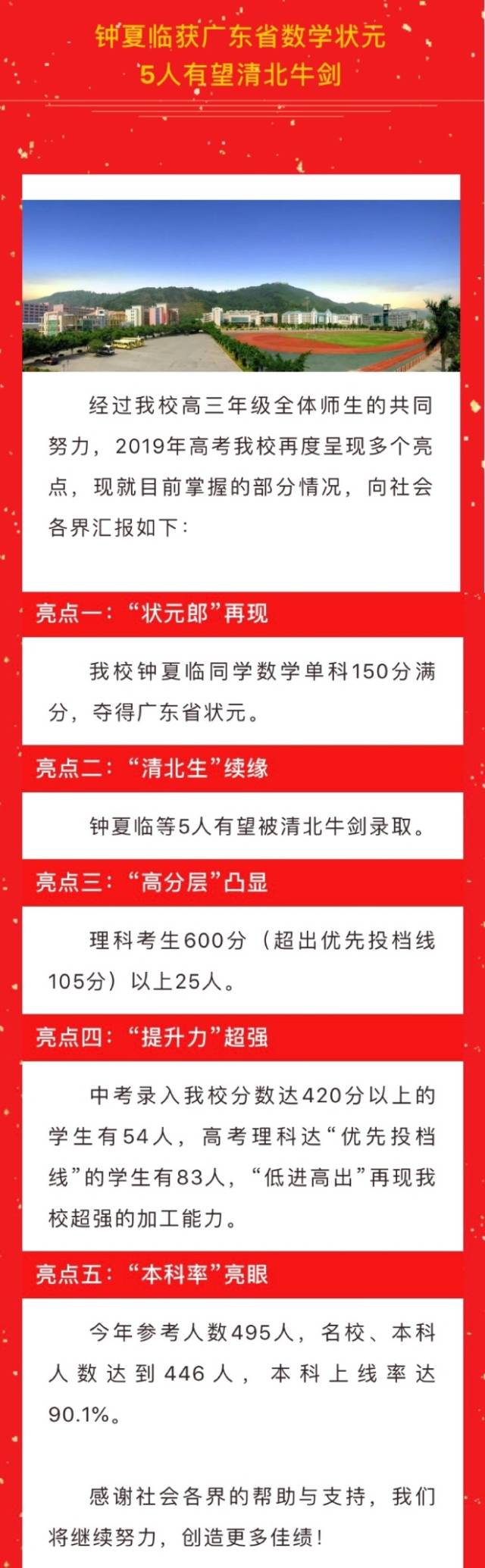 南方網(wǎng)2019年6月26日訊 深圳市富源學校25日在其官網(wǎng)發(fā)布該校2019年高考報告,稱經(jīng)過該校高三年級全體師生努力,該校2019年高考再度呈現(xiàn)多個亮點。其中該校學生鐘夏臨數(shù)學單科150分滿分,鐘夏臨等5人有望被清華、北大以及牛津、劍橋錄取。