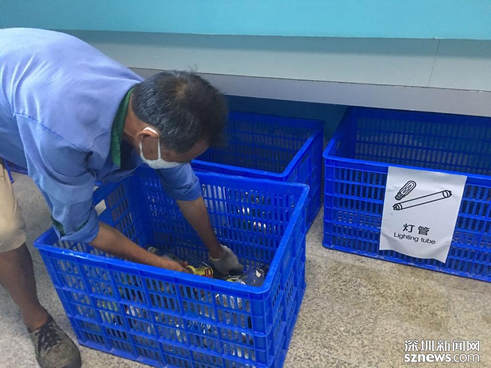 “有害垃圾包括電池、各種形狀的燈管及棄置藥品藥具等,需要專業(yè)人員來收?!鄙钲谑欣诸愂聞?wù)管理中心甘先生解釋了有害垃圾被鄧伯“落下”的原因。隨后,記者見到了危險(xiǎn)的一面:當(dāng)天,在專業(yè)人員搬運(yùn)有害垃圾時(shí),燈管突然破裂,碎了一地,散發(fā)出異常氣體,戴著特殊口罩及手套的他們?nèi)匀挥畜@無險(xiǎn)地完成了運(yùn)送工作?!斑@確實(shí)很危險(xiǎn),但我們的工作人員都經(jīng)歷過嚴(yán)格的上崗培訓(xùn),也配置了齊全裝備,所以基本沒有發(fā)生過不可控的危險(xiǎn)事件?!背羞\(yùn)有害垃圾的安信美實(shí)業(yè)有限公司黃金良介紹道。
