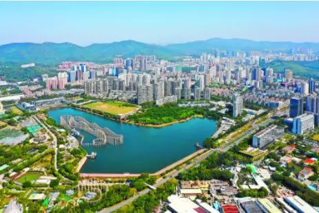 2018年拍攝的香蜜湖,青山綠水間,樓宇林立。圖自深圳晚報