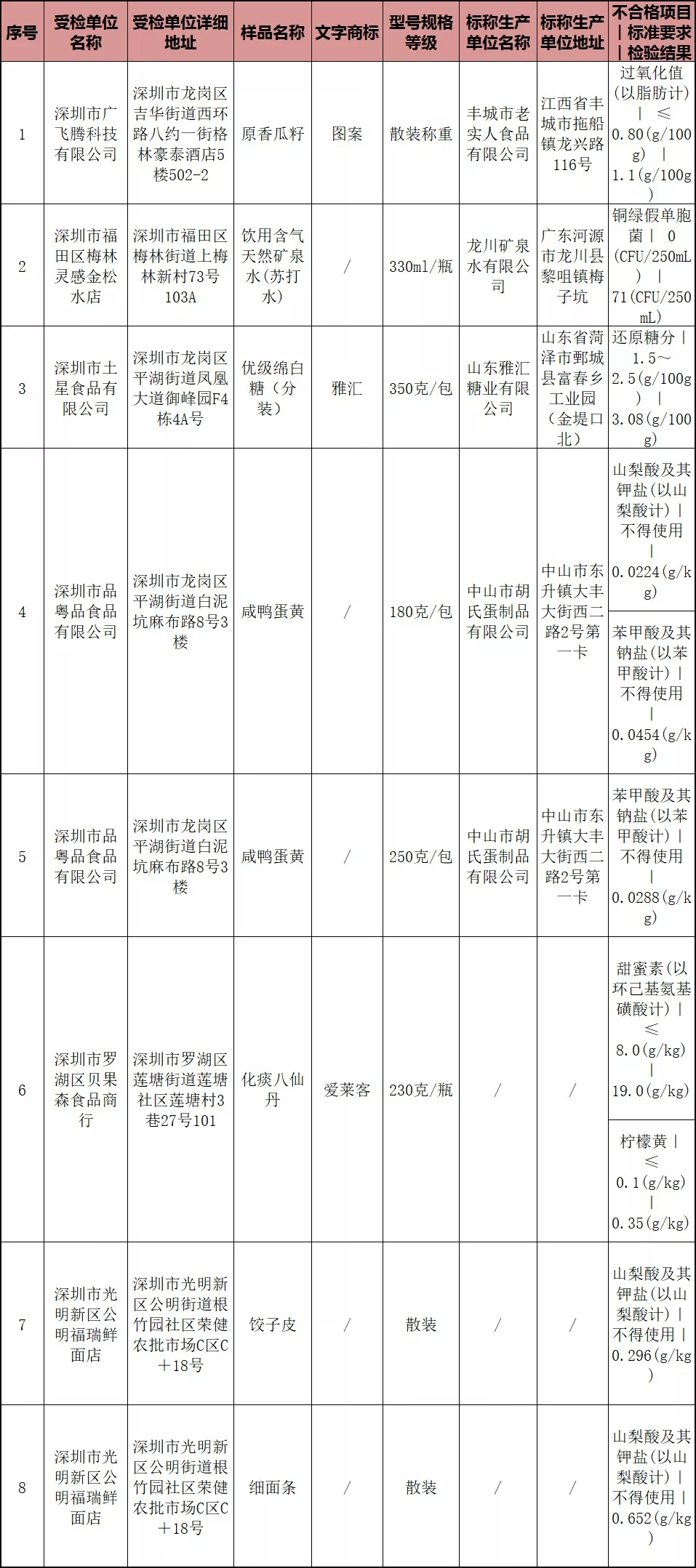 本次共抽檢生產(chǎn)、流通、餐飲環(huán)節(jié)食品619批次,涉及生產(chǎn)、流通、餐飲環(huán)節(jié)經(jīng)營主體275家次,共檢測食品指標3614項次。其中檢出不合格樣品8批次,涉及不合格食品類別有炒貨食品及堅果制品1批次,蛋制品2批次,糧食加工品2批次,食糖1批次,水果制品1批次,飲料1批次;涉及不合格項目類別為微生物污染、食品添加劑、品質指標。