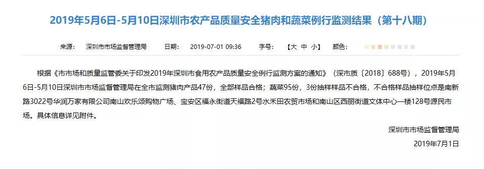 發(fā)布的豬肉產(chǎn)品和蔬菜抽檢結(jié)果就對啦!