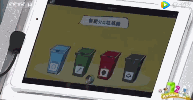 ▲說出垃圾的名字,相對應(yīng)的垃圾桶就會(huì)自動(dòng)打開。