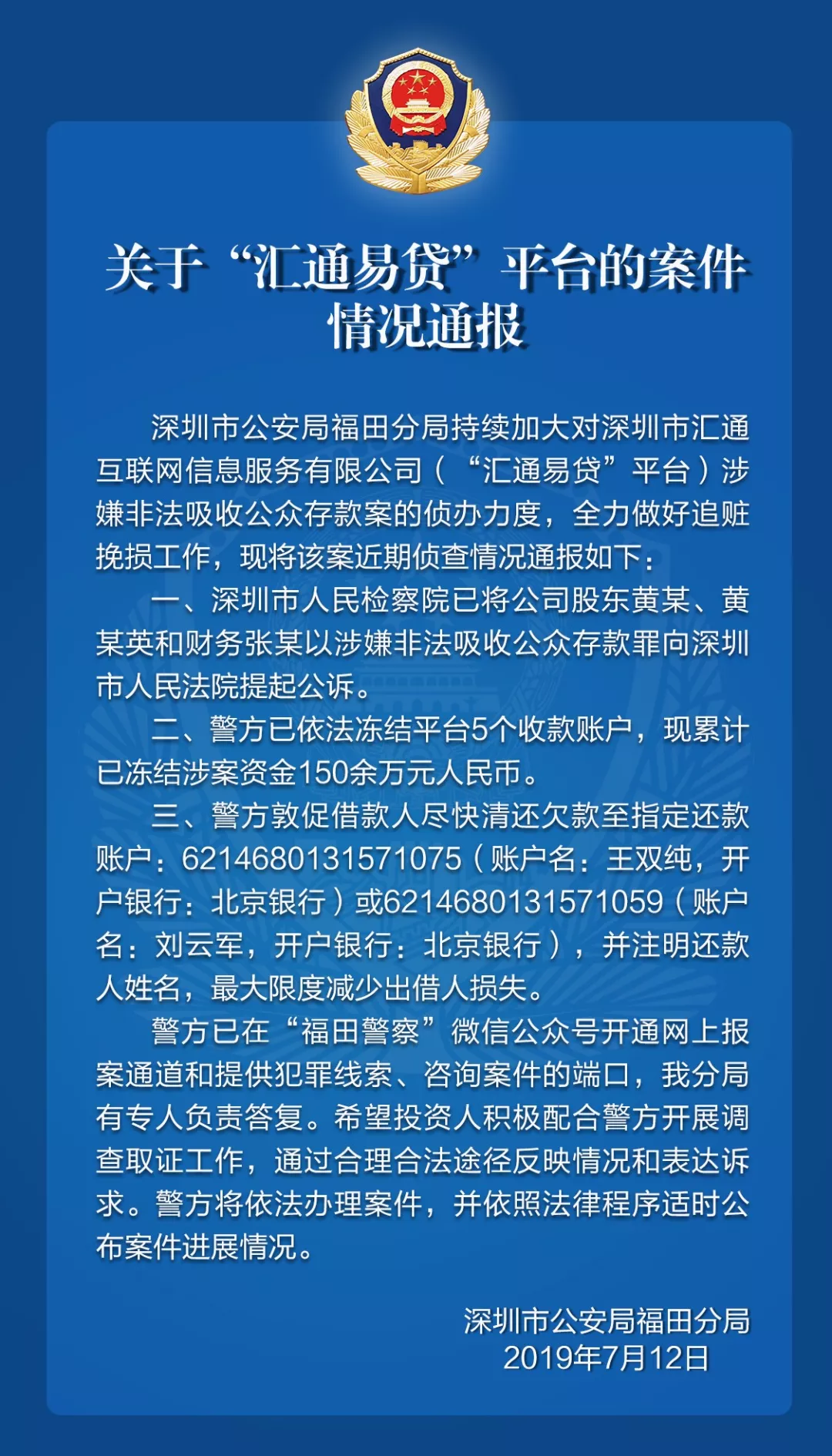 關(guān)于“匯通易貸”平臺的案件情況通報