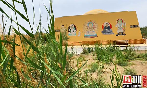 7月12日,新疆和田達(dá)瑪溝佛教遺址博物館外墻上臨摹的佛教壁畫。