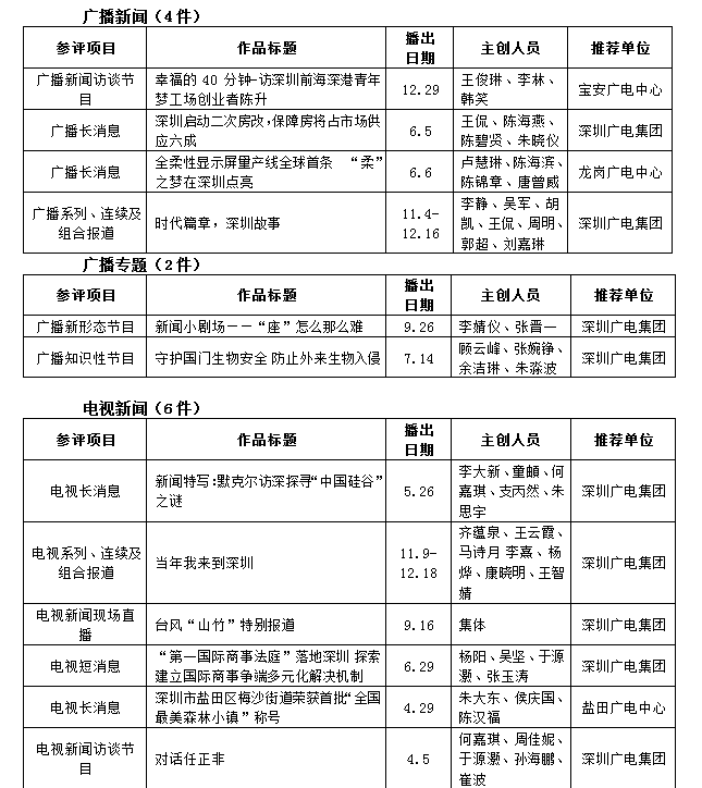 第26屆(2018年度)深圳新聞獎獲獎作品目錄