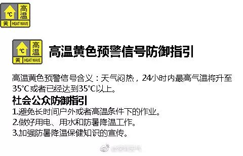 深圳市氣象臺于2019年07月15日08時在全市陸地發(fā)布高溫黃色預(yù)警,目前高溫預(yù)警信號生效中,信號可能持續(xù)3天左右,白天天氣酷熱,大家要做好防暑降溫工作,避免長時間戶外或者高溫條件下的作業(yè)。