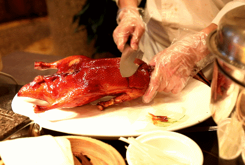 鴨皮的油脂經(jīng)過(guò)炙烤