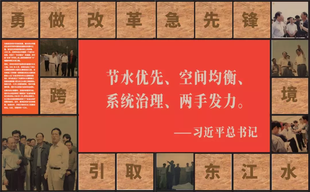 第三部分“清清東江水汩汩入鵬城”,著重展示東江水源工程建設(shè)的全過(guò)程。以工程線路為展覽線索,再現(xiàn)水務(wù)工作者在長(zhǎng)達(dá)106公里的戰(zhàn)線上奮戰(zhàn)的場(chǎng)面。通過(guò)輸水設(shè)施的新舊照片對(duì)比,描繪出一條在深惠兩城平地崛起的深圳“生命線”。