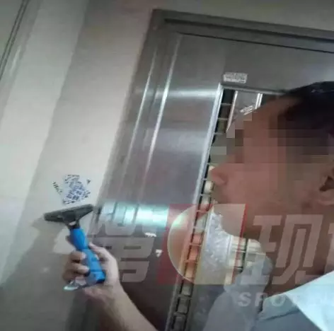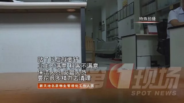 ▲小區(qū)物管人員上門(mén)清理“牛皮癬”
