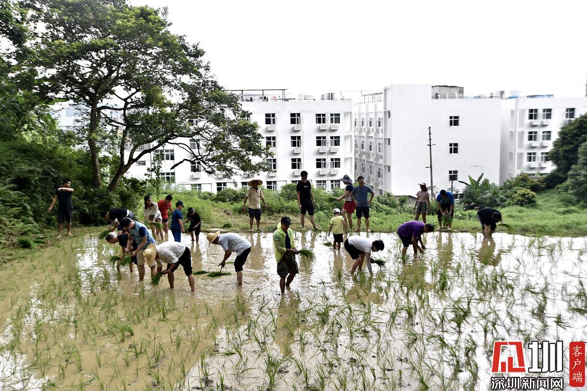 據(jù)了解,本次參加活動的青少年有100多名,他們手持秧苗,腳踩泥漿,在社區(qū)老黨員和家長的指導(dǎo)下體驗插秧農(nóng)耕作業(yè)。據(jù)南嶺村社區(qū)黨委書記張育彪介紹,在深圳高速城市化進程中,南嶺村特意保留了20畝水稻田,作為青少年的勞動教育基地。“目的是讓孩子們不要忘記勞動人民的本色,”他說,“通過感受勞動的艱辛,教育他們要熱愛勞動,富而思進?!?/p>