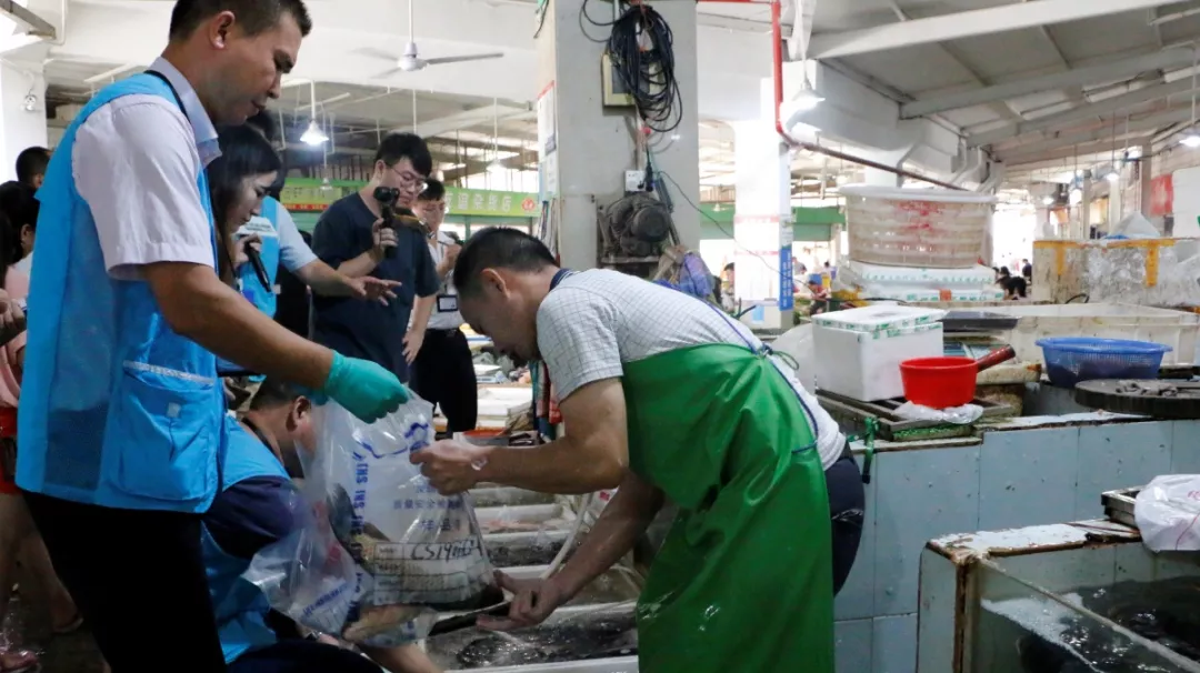 7月26日,深圳市市場(chǎng)監(jiān)管局在大鵬新區(qū)大鵬市場(chǎng)開展2019年度第五期“農(nóng)產(chǎn)品任你查”專項(xiàng)行動(dòng),深圳市市場(chǎng)監(jiān)管局農(nóng)業(yè)處工作人員,大鵬局、轄區(qū)監(jiān)管所執(zhí)法人員,市農(nóng)檢中心專家和技術(shù)人員,一街一車一室檢測(cè)人員以及新聞媒體等30多人共同參與此次監(jiān)督檢查行動(dòng),此次行動(dòng)由深圳新聞網(wǎng)、晶報(bào)、深圳特區(qū)報(bào)、騰訊大粵網(wǎng)、鳳凰網(wǎng)五家媒體記者進(jìn)行全程直播。與此同時(shí),全市其它9個(gè)區(qū)也同時(shí)開展“農(nóng)產(chǎn)品任你查”專項(xiàng)行動(dòng)。