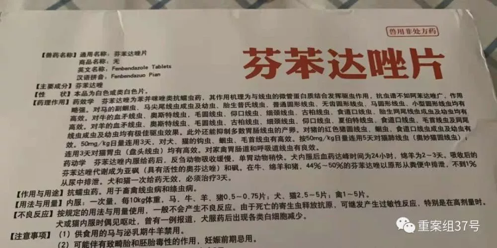 專家表示,芬苯達(dá)唑畢竟是獸用驅(qū)蟲藥,它的劑型是為了方便投喂動(dòng)物,安全性也僅僅達(dá)到動(dòng)物藥標(biāo)準(zhǔn),其對(duì)人體的毒副反應(yīng)、藥物相互作用都是未知數(shù),無法預(yù)測(cè)服用后會(huì)發(fā)生什么后果。