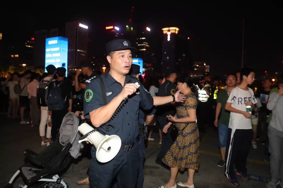 “注意安全,不要擁擠,照顧好老人和小孩?!蹦硰V場擁擠的人群中,福田公安分局機動訓(xùn)練大隊副大隊長黃裕青拿著大喇叭喊道。他的臉熱得通紅,汗珠大顆大顆地往下掉,但卻始終沒停下巡邏的腳步。嗓子沙啞了,他便喝口水潤潤,繼續(xù)在人群中穿梭,在維護秩序的同時,為有需要的人提供幫助。