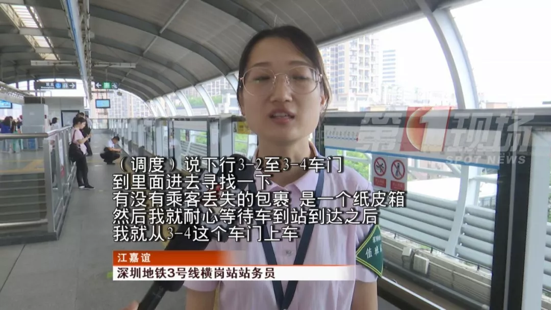 當時,一輛列車即將到達龍崗的橫崗站,站務員從3-4號門上車尋找。最終,站務員在列車座位下面找到了乘客遺失的紙箱,