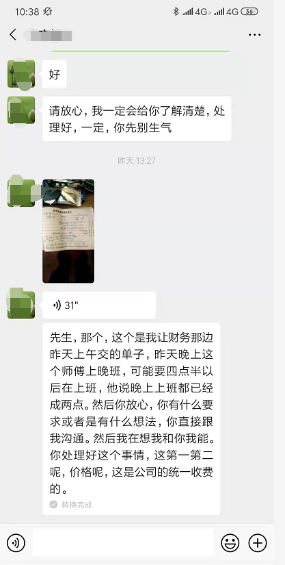 藍先生的妹妹在58同城小助手,找到了深圳市易臣國際貨運代理有限公司,并預約了上門清洗空調的服務。當師傅上門以后,除了清洗外,還說空調存在多個問題,如需要加雪種(學名“氟利昂”)、線路老化、空調漏水等,6臺空調整體清洗加修理下來,藍小姐當天共花費6618元。