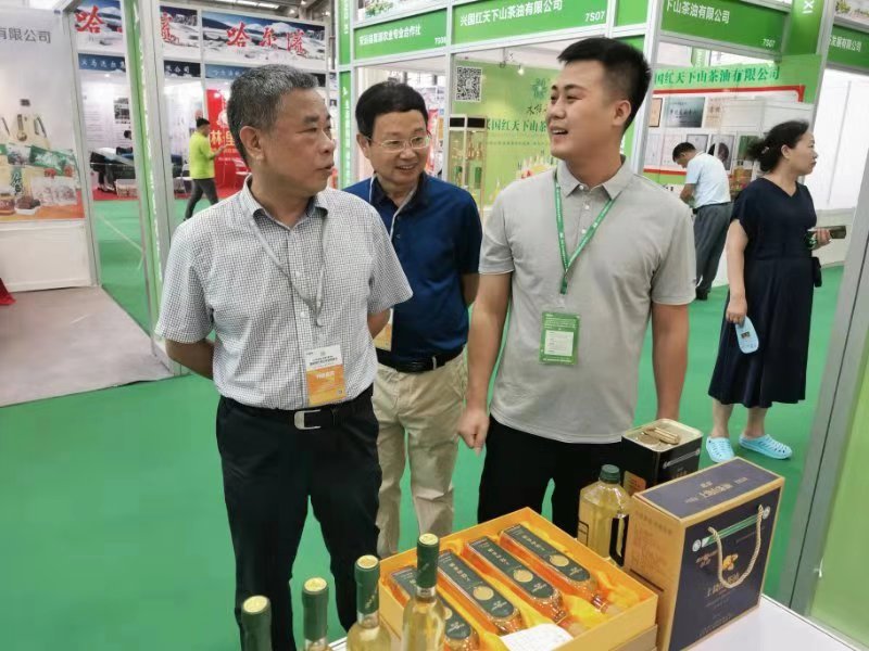 展銷會(huì)期間,市委常委、政法委書記陳榮高,市農(nóng)業(yè)農(nóng)村局黨組成員、副局長(zhǎng)呂文生一行特意走訪了參加本次展會(huì)的多家企業(yè)。在江西油脂有限公司的展區(qū),陳書記詳細(xì)了銷售人員紅花山茶油銷售情況,當(dāng)?shù)弥u出不少時(shí)滿意得點(diǎn)頭稱贊,并勉勵(lì)銷售人員要以此為契機(jī),讓更多的上饒優(yōu)質(zhì)農(nóng)產(chǎn)品走進(jìn)粵港澳大灣區(qū),走向全世界。