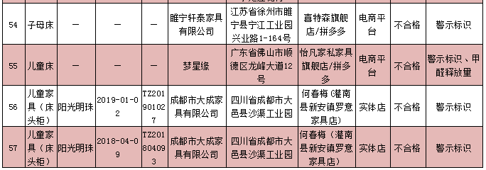 兒童家具產(chǎn)品質(zhì)量監(jiān)督抽查不合格企業(yè)名單