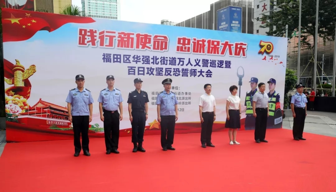 據(jù)了解,為全面推進群防群治建設(shè),夯實基層基礎(chǔ)工作,拓寬群防群治領(lǐng)域,提升群防群治效能,筑牢社會治安防控體系,12日上午9時30分,深圳市福田區(qū)華強北街道萬人義警巡邏暨百日攻堅反恐誓師大會在華強酒店廣場舉行,華強北街道辦黨工委書記陳曉中,福田公安分局副局長譚慶彬,華強北街道副書記楊華蘭,福田公安分局治安科科長左樂,華強北派出所副所長張瓊漫、黃強,通心嶺派出所副所長劉景波等相關(guān)部門負(fù)責(zé)人參加儀式并發(fā)表講話。本次大會的舉行,意味著福田義警隊伍再添中堅力量。