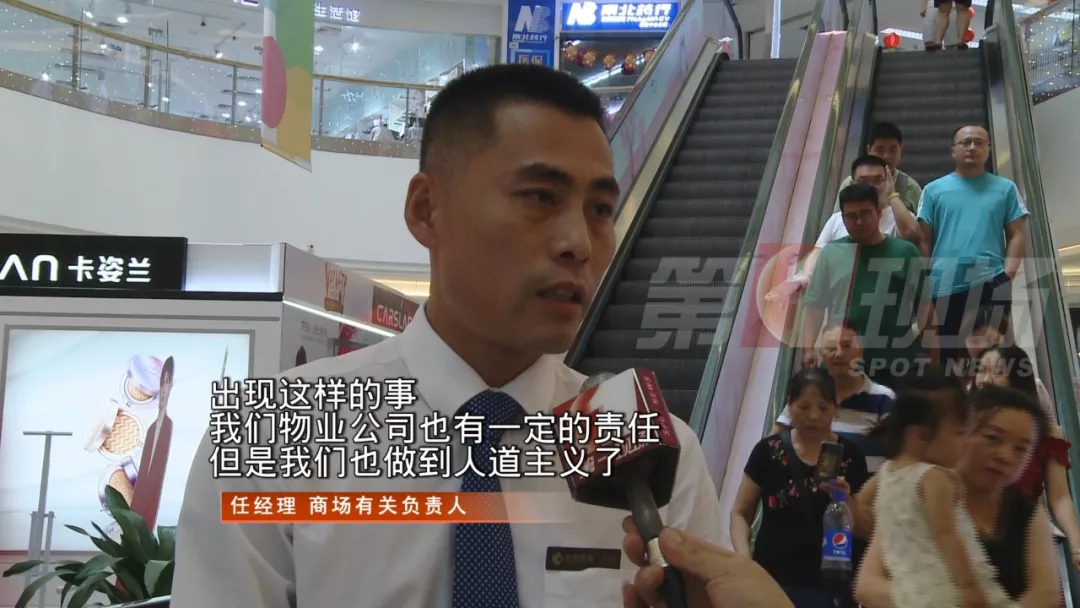 但商場負(fù)責(zé)人介紹,監(jiān)控顯示:事故發(fā)生大約10秒鐘左右,保安就及時趕到了現(xiàn)場。