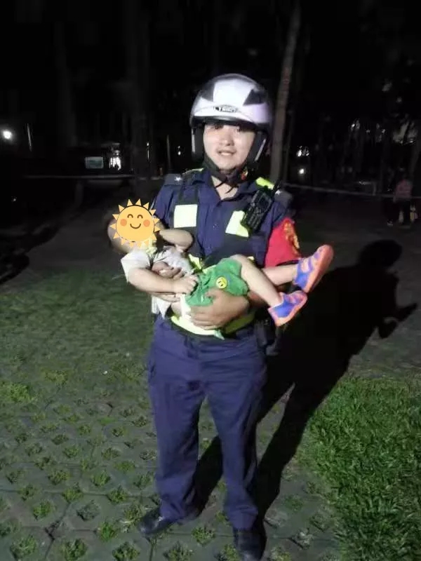 中秋夜21時(shí)許,深圳市公安局福田分局機(jī)動(dòng)訓(xùn)練大隊(duì)四中隊(duì)隊(duì)員黃俊豪、施裕楓在蓮花山巡邏時(shí),發(fā)現(xiàn)一名兩歲左右的幼童和父母走散了在哭著找媽媽?zhuān)蛐『⒛挲g太小無(wú)法獲取父母的聯(lián)系方式,兩名隊(duì)員便一直守護(hù)著孩子并在附近尋找其父母,直到找到其父親后送還小孩。