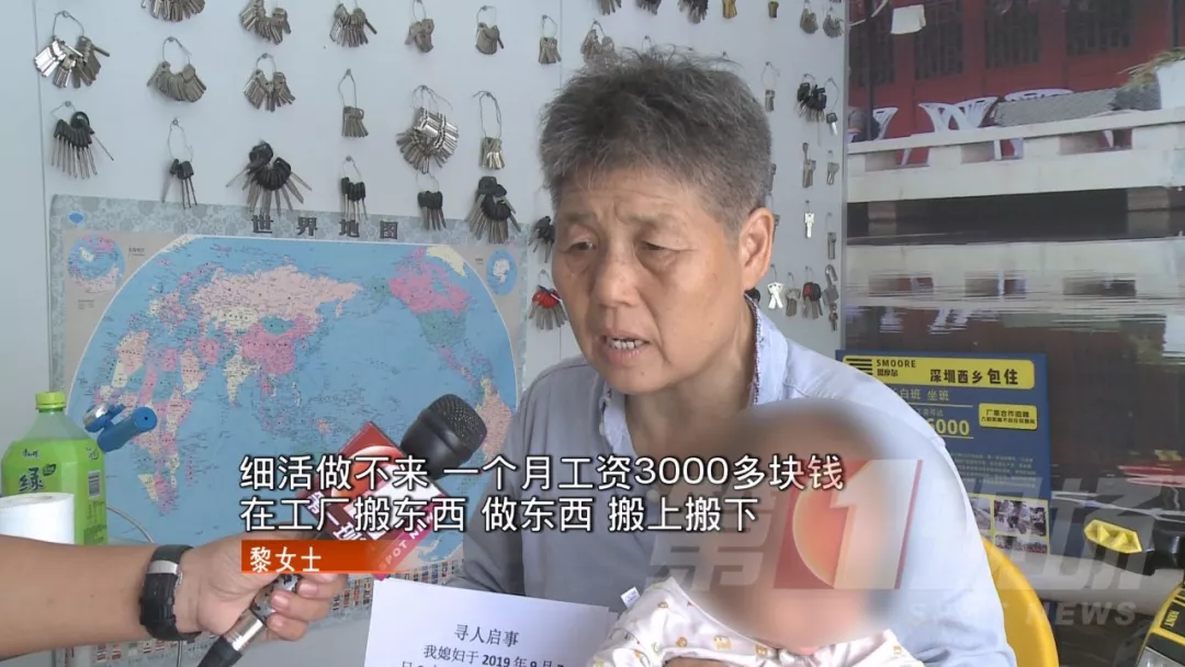 兒媳婦走失,那兒子怎么不過問呢?采訪中記者了解到,這家人情況特殊,他們老家在湖北,來深圳已經十幾年了,黎女士老兩口育有一子一女,女兒情況正常,目前在深圳一工廠做文員。兒子今年31歲,從小智力略有缺陷,來深圳后有好心的工廠老板,給了他一份工作。