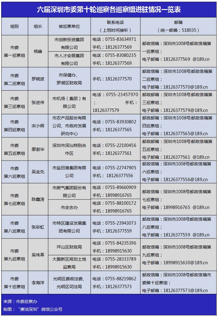 近日,根據(jù)深圳市委巡察工作部署,六屆市委第十輪巡察進(jìn)駐已全部完成,10個(gè)巡察組分別對(duì)市保健辦、市機(jī)場(chǎng)(集團(tuán))有限公司、市鹽田港集團(tuán)有限公司、市燃?xì)饧瘓F(tuán)股份有限公司、市農(nóng)產(chǎn)品股份有限公司、市特區(qū)建設(shè)發(fā)展集團(tuán)有限公司、市創(chuàng)新投資集團(tuán)有限公司、市人才安居集團(tuán)有限公司等8個(gè)單位黨組織開(kāi)展常規(guī)巡察,對(duì)深圳市深汕特別合作區(qū)和市史志辦開(kāi)展機(jī)動(dòng)式巡察,對(duì)市政府發(fā)展研究中心黨組開(kāi)展巡察“回頭看”;提級(jí)對(duì)光明區(qū)委政法委開(kāi)展掃黑除惡專(zhuān)項(xiàng)斗爭(zhēng)進(jìn)行專(zhuān)項(xiàng)巡察,對(duì)羅湖區(qū)財(cái)政局、坪山區(qū)財(cái)政局黨組開(kāi)展巡察“回頭看”,對(duì)光明區(qū)司法局、大鵬新區(qū)規(guī)劃土地監(jiān)察局黨組開(kāi)展機(jī)動(dòng)式巡察。