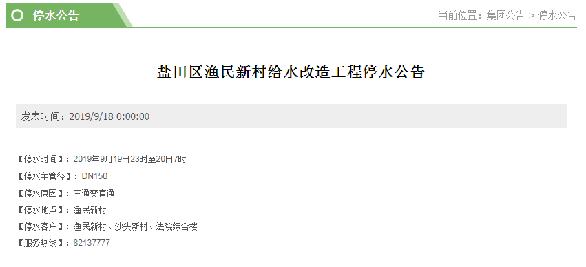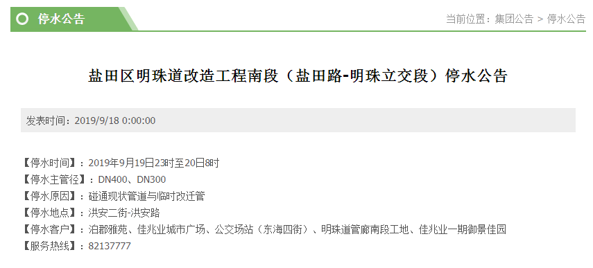 原標(biāo)題:做好準(zhǔn)備!19日至20日福田、鹽田這些地方將停水