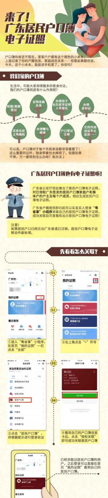 廣東省公安廳此次推出居民戶口簿電子證照,對(duì)于已經(jīng)領(lǐng)取廣東簽發(fā)的戶口簿家庭戶和集體戶的戶主及每個(gè)戶成員,都相應(yīng)生成居民戶口簿電子證照。需要注意的是,如果居民戶口已經(jīng)遷出廣東省或已注銷,居民戶口簿電子證照會(huì)作廢處理。