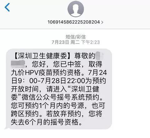 晶報(bào)2019年9月20日訊 據(jù)深圳疾控微信公眾號(hào)消息,2019年第9期深圳九價(jià)HPV疫苗搖號(hào)將于9月24日上午10:00,在深圳市疾控中心舉行,這次搖號(hào)共有1937個(gè)名額。