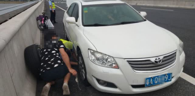 10月5日下午4點多,珠海交警郭警官開著警車在珠三角環(huán)線高速巡邏時,看到有一輛粵AQ××9J號白色豐田小車??吭趹避嚨郎希蛑p閃。郭警官立即上前詢問情況,原來小車剛上高速沒多久就爆胎了,司機深知在高速停下來很危險,急得團團轉,天還下起了小雨。