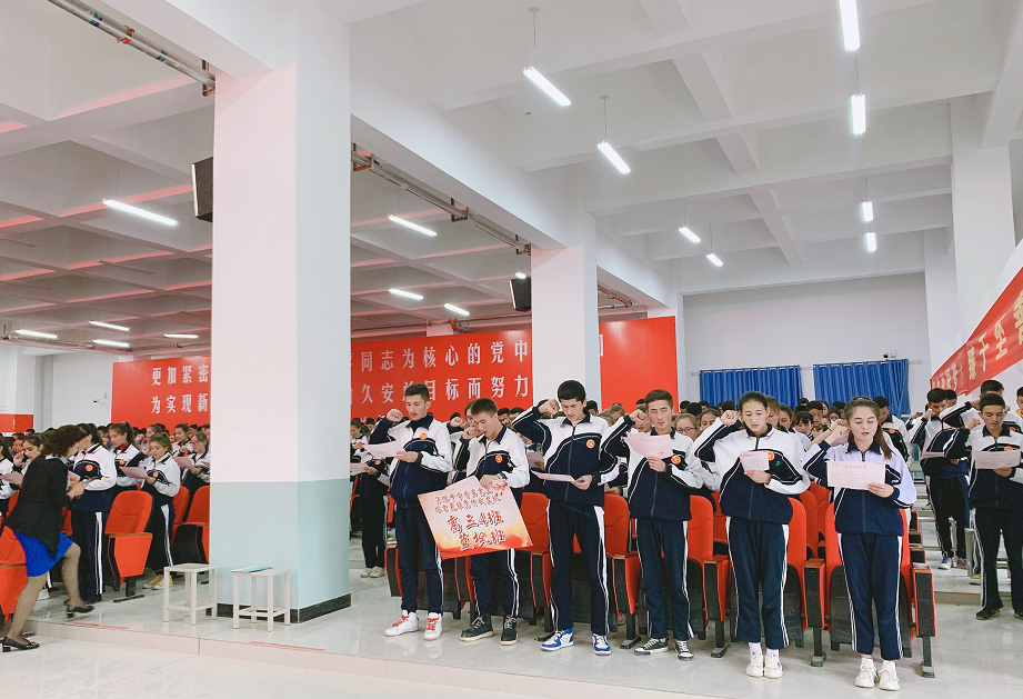 會(huì)場(chǎng)上,紅旗飄揚(yáng),氣氛熱烈。出征儀式在雄壯的國(guó)歌聲中拉開了序幕。佩戴著訂制的儀式徽章的高三各連將士整齊站立,高聲宣誓,他們用響徹云霄的錚錚誓言表達(dá)了自己堅(jiān)定奮進(jìn)的決心,用泰然自若的神情展現(xiàn)了深塔學(xué)子氣壯山河的豪氣。誓言震耳欲聾,將士信心滿懷。