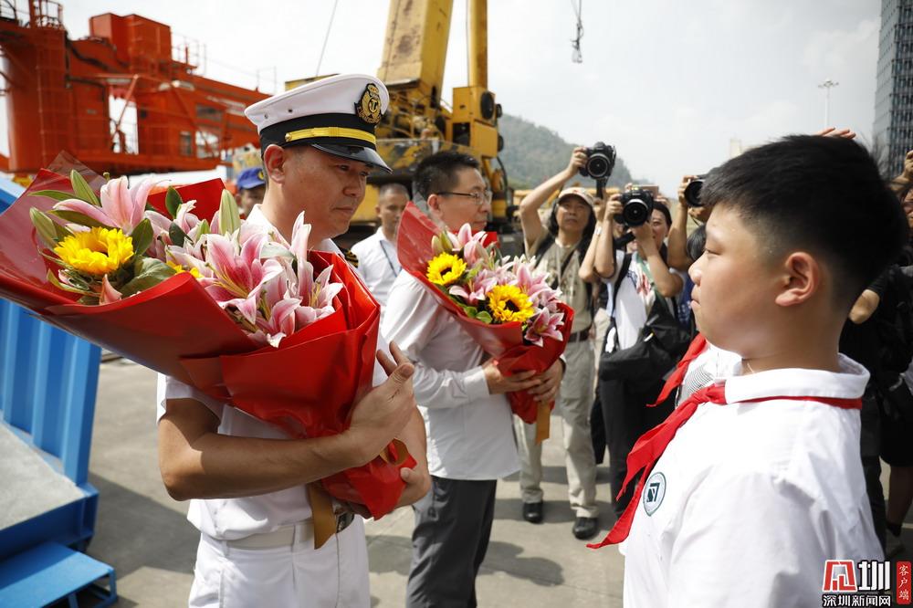 當(dāng)天下午,近百名市民、學(xué)生及各市直部門和中央駐深涉海部門代表看到“雪龍2”號船靠泊碼頭,發(fā)出熱烈的歡呼聲,他們揮舞著手中的紅旗熱烈歡迎“雪龍2”號科考船及國家第36次南極考察隊(duì)抵達(dá)深圳。當(dāng)船舶靠穩(wěn)并架設(shè)好舷梯后,深圳市政府副市長、黨組成員黃敏等領(lǐng)導(dǎo)攜兩位少先隊(duì)員迎接考察隊(duì)代表,并獻(xiàn)花握手致意,表達(dá)誠摯的歡迎和衷心的祝福。