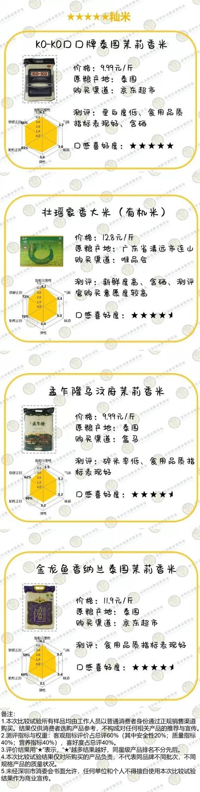 大米比較試驗測評產(chǎn)品信息及評級表↓
