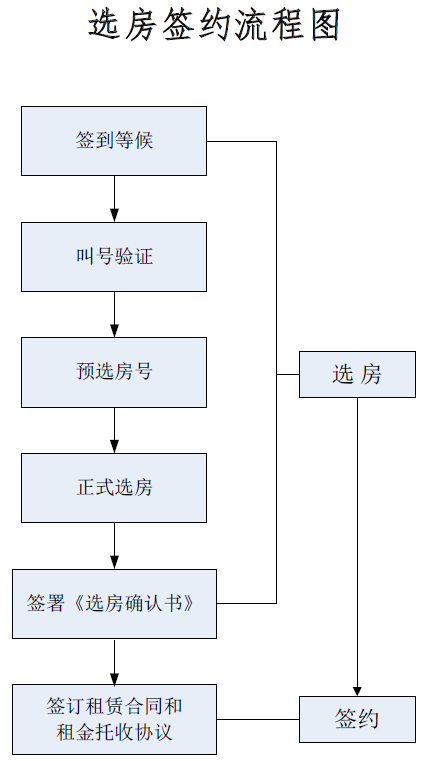 選房地點(diǎn)在深圳市福田區(qū)紅荔西路蓮花大廈東附樓三樓選房區(qū)。選房方式為合格家庭按照選房排位順序依次選擇對應(yīng)配租面積標(biāo)準(zhǔn)的住房,對應(yīng)房源選完即止。選房簽約流程如下: