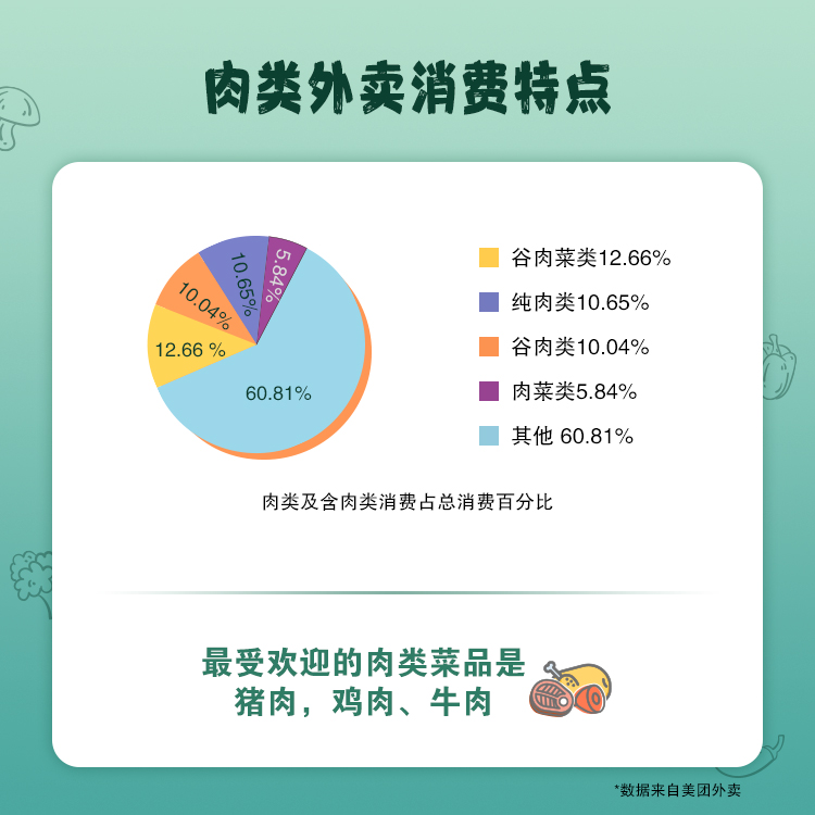 《我國(guó)10城市高頻外賣(mài)消費(fèi)菜品膳食結(jié)構(gòu)分析》報(bào)告研究指出十城市Top50消費(fèi)菜品中,排第一的均為米飯,深圳居民對(duì)米飯及米制品的喜愛(ài)全國(guó)排名第一;十城中,油條在所有城市都進(jìn)入了Top50;深圳和上海市民早餐最?lèi)?ài)油條;珠海、哈爾濱居民尤其偏愛(ài)肉類(lèi)食品,在訂制純?nèi)忸?lèi)食品的頻次,哈爾濱城市排名最高,谷薯類(lèi)食品對(duì)哈爾濱居民的吸引力比全國(guó)其他城市低;西安、北京更愛(ài)選擇主食和菜肴搭配,北京居民對(duì)肉類(lèi)食物的興趣度比全國(guó)其他城市低。此外,整體來(lái)看,最受歡迎的肉類(lèi)是豬肉、雞肉、牛肉,最受歡迎的蔬菜是白菜、包菜、西紅柿。