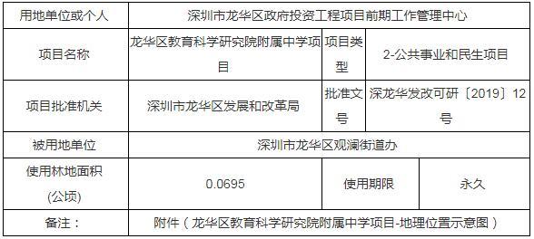 公示內(nèi)容顯示,龍華區(qū)教育科學研究院附屬中學擬使用林地面積0.0695公頃。